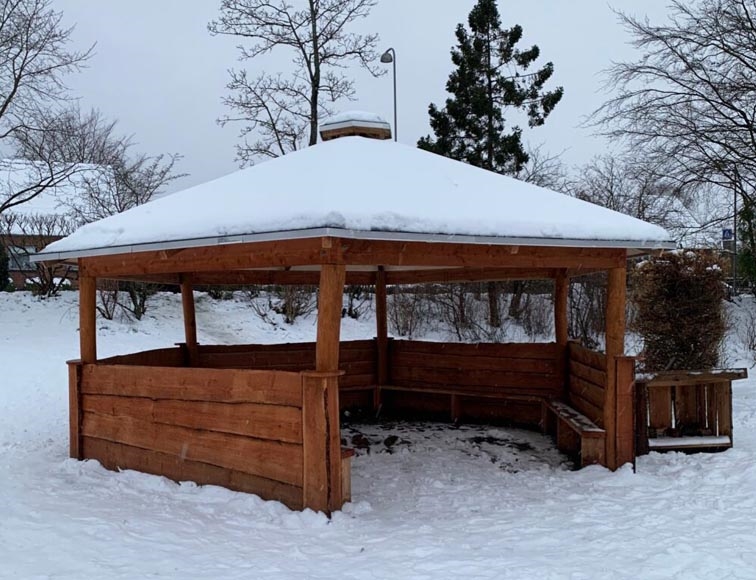 6-kantet Bålhytte m. 5 halvsider, Ø6 meter - Dansk produceret bålhus i lækre naturmaterialer