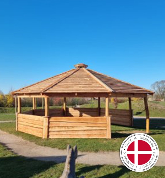 8-kantet Bålhytte m. 6 halvsider, Ø8 meter - Dansk produceret bålhus i lækre naturmaterialer