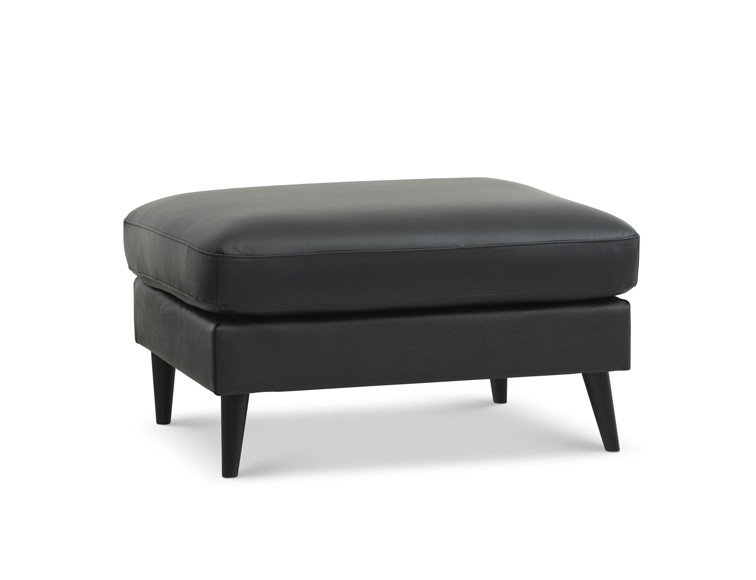 Køb her Ask sofa puf, i sort semianilin læder, hvis I ønsker en fodskammel til jeres Ask sofa arrangement. Sofa puffen er i flot stilrent design, og er et godt supplement til jeres sofagruppe eller hjørnesofa, men kan også stå alene. Puffen har en fast pude af skum (170mm HR35 kg/M3), som er betrukket med en sort semianilin læder. Der kan vælges mellem 4 typer ben.