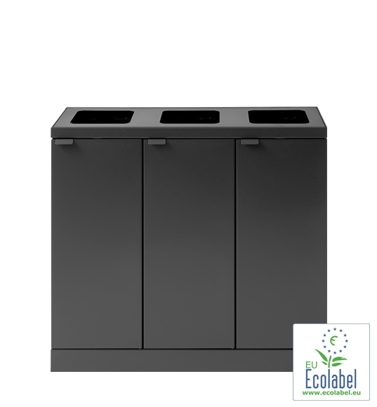Bica affaldssortering / affaldsbeholder med 3 åbne indkast (3x45L). Elegant og praktisk løsning til indendørs affaldshåndtering på diverse arbejdspladser mm. Beholderen er en del af den fleksible Bica Basic serie, som består af en række mindre affaldsløsninger til sortering. Beholderen har justerbare fødder som er skjult bag soklen. Den har integreret poseholder og skjulte hængsler. Tømmes nemt via frontåbning med soft-close, så man undgår tunge løft ovenud.