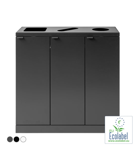 Bica Affaldsstation m. 3 formede indkasthuller til indendørs affaldssortering, 3x65L - Affaldshåndtering (S30)