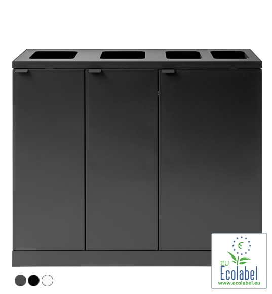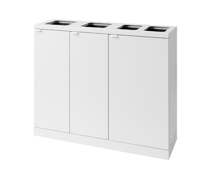 Bica affaldssystem / affaldsstation med 4-6 fraktioner til indendørs affaldssortering. En elegant og fleksibel løsning til affalds-håndtering på skoler, institutioner, diverse professionelle miljøer mv. Beholderen er i pulverlakeret stål (1,3 mm) og er en del af den fleksible Bica Advanced serie af modulære affaldsbeholdere. Denne beholder har som udgangspunkt 4 fraktioner til sortering. Dog medfølger 2 flytbare hylder, hvis brug for yderligere inddelinger og sorteringsmuligheder. Hertil kan tilkøbes spande i genbrugsplast til fx. sortering af glas, metal mm. Affaldsbeholderen har integreret poseholdere og tømmes nemt og hurtigt via frontdør med soft-close. Har også dæmper i top, for sikker og rolig lukning.