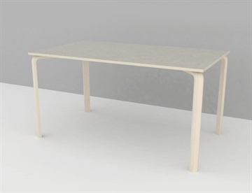 Klassisk institutionsbord med formspændte ben og linoleum på overfladen. Bordet er udført i 18 mm hvidpigmenteret birkekrydsfiner, og er er velegnet til brug i børnehaver, SFO'er mv. Vælg imellem bord med Marmoleum (marmoreret) eller Desktop (ensfarvet) linoleum overflade nedenfor. BEMÆRK at Desktop linoleum er lidt dyrere. HUSK at angive ønskede farve ved bestilling.