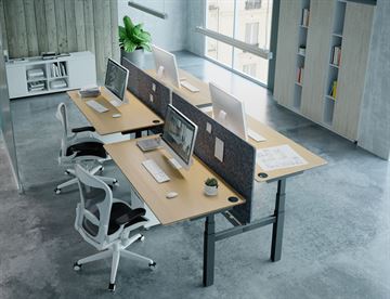 Dobbelt hæve-sænkebord med skærmvæg - super skrivebord til det åbne kontormiljø