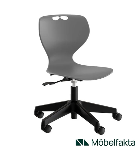 Tarris stolen fås også med glidefødder i stedet for hjul. Fås også med andre typer understel og i forskellige junior modeller med samme siddeskal, men i en lidt mindre udgave. Se hele vores udvalg af elevstole og skolemøbler her.