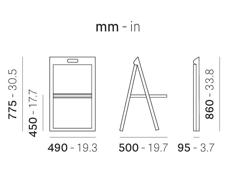Mål: Totalhøjde 77,5 cm / 86 cm (sammenklappet). Sædehøjde 45 cm. Dybde 50 cm. Bredde 49 cm / 9,5 cm (sammenklappet). Se også måltegning under billeder. Vægt 5,8 kg.