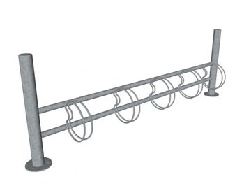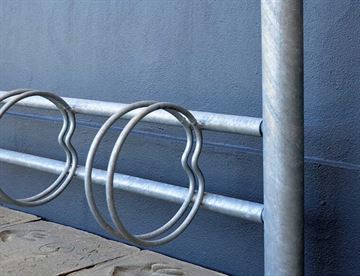 Cykelstativet er udført i varmforzinket stål og fås til fastboltning eller nedstøbning.