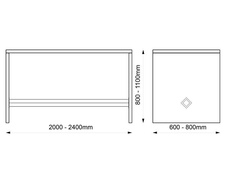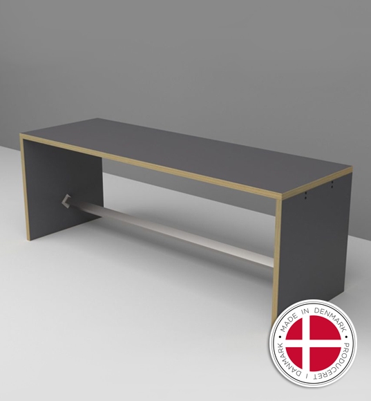 Gavlbord med fodstøtte i et enkelt og stilrent design. Bordet er udført i 30mm birkekrydsfiner med slidstærkt laminat på top og sider. Et lækker højbord med gavle, som passer ind de fleste steder. Velegnet som mødebord på konteret, ståbord til korte møder og sammenkomster, barbord i loungeområder mv. Et bord med mange anvendelses muligheder. Brug det til at stå omkring, eller køb stole til. Se også vores udvalg af Barstole og Høje stole her.