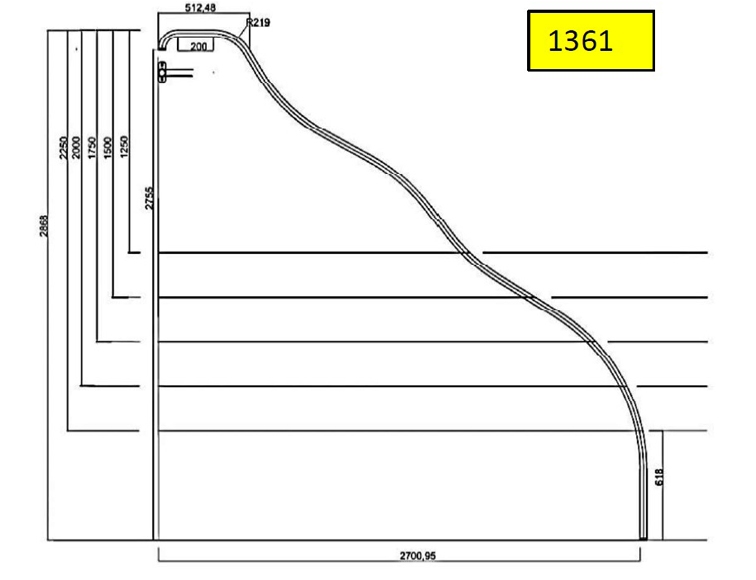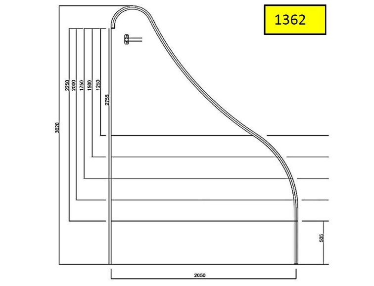 1 stk. Glidestang enkel "Kurve" bredde 203 cm  Kr. 1.668,- ex. moms