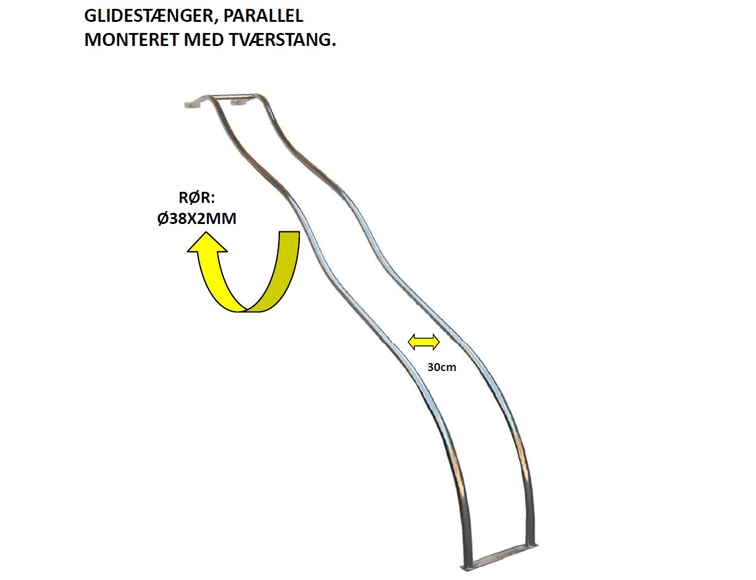2 stk. Glidestænger parallelle med tværstang i top og bund - bredde imellem de to rør er 30 cm  Kr. 3.968,00 ex. moms