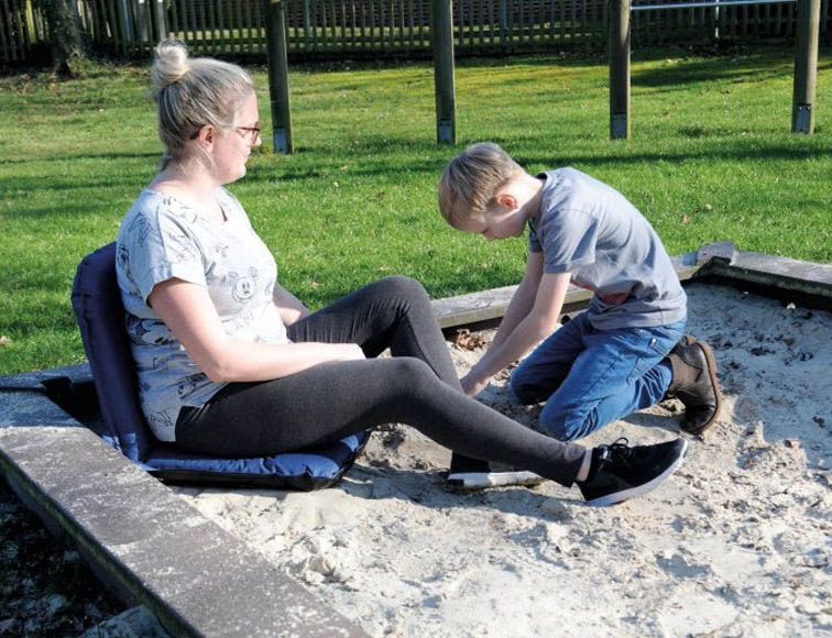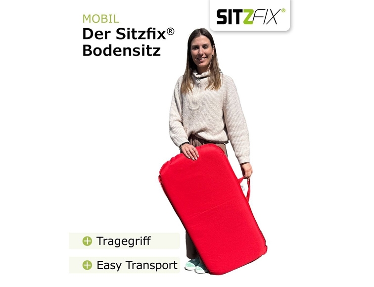 Stolen kan slås sammen i etaper. Slår du den ene halvdel af stolen op fungerer den som et sæde med ryglæn til én person. Hvis du lægger den fladt på gulvet, kan to personer sidde på den ved siden af ​​hinanden. Når den er foldet ud, kan den også bruges som støtte til en bænk. Sitzfix fylder lidt og er nem at transportere takket være bærehåndtaget.