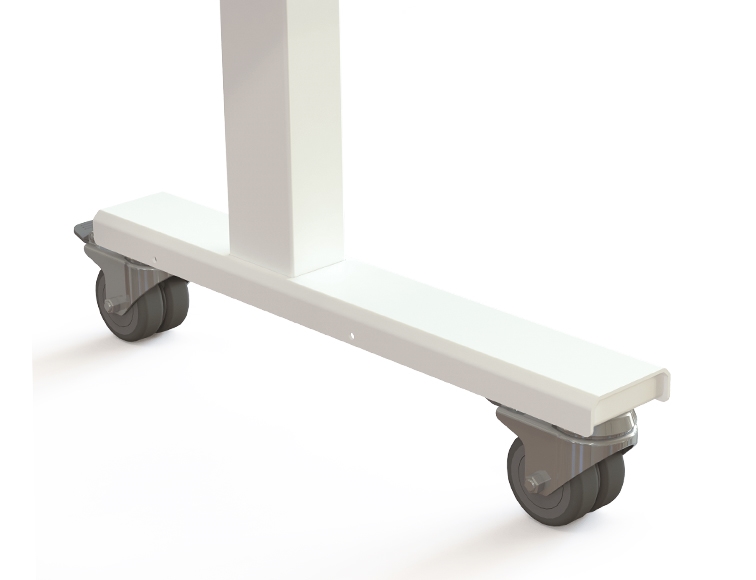 Materialer: Bordpladen består af en 25 mm spånplade (MFC plade, E0 klassificeret) med melaminoverflade, afsluttet med 2mm ABS-kant. Robust for slid, stød og væsker. Stellet er i pulverlakeret stål (Hvid, RAL 9016).