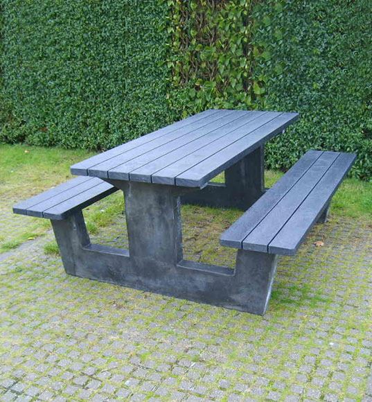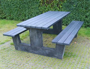 Himmerland bord/bænke sæt med stel i beton og planker i vedligeholdelsesfri genbrugsplast