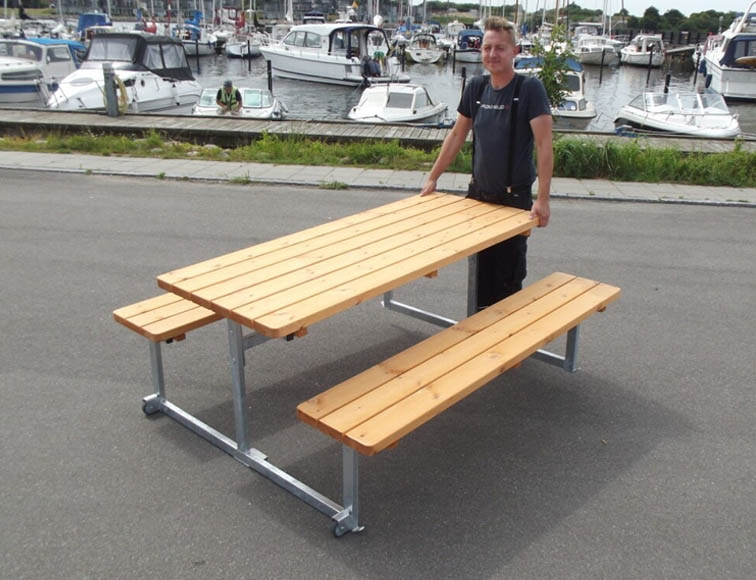 Hjulsæt til bord/bænkesæt med firkantede stel samt model Picnic - Få hjul på jeres bord/bænkesæt