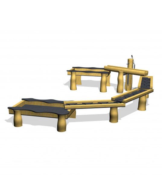 Vandkanalsystem  i træ (Douglas/HPL) til vandlege på legeområdet. Kanalsystemet har strømmene kanaler, kar og pumpestation med vandpumpe og 10 meter slange. Se opstilling. Sand -og vandlege er sjove for børn i alle aldre, og med dette vandkanalsystem, får man en installation til formålet, som egner sig til de fleste legepladser.