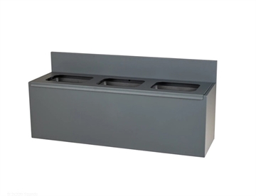 Væghængt kildesortering / affaldsbeholder m. 3 fraktioner med åbne indkast til sortering. Smart affaldsstation i pulverlakeret stål, velegnet til håndtering af affald på diverse arbejdspladser, skoler mv. hvor man ønsker en affaldsbeholder til vægmontering som er god til affaldssortering. Til denne affaldsbeholder medfølger 3 stk. 20 liter affaldsspande i genanvendt plast. Nem at tømme og rengøre. Låget med åbne indkasthuller fås med eller uden softclose