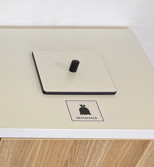 TILKØB: Der kan tilkøbes låg til firkantet hul, hvis denne fx bruges til bio- eller madaffald. Derudover kan der købes Ekstra Piktogram, hvis I har brug for flere. Tilkøbes i rullegardin nedenfor (HUSK at angive ønskede ved bestilling).