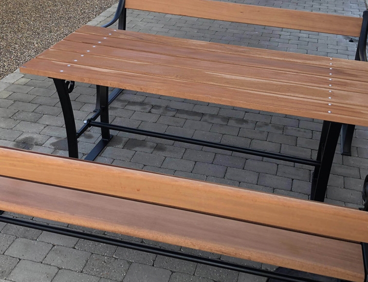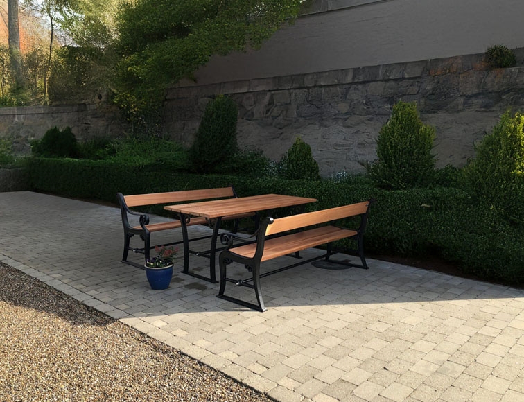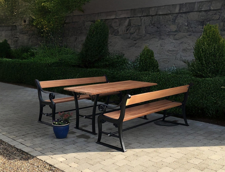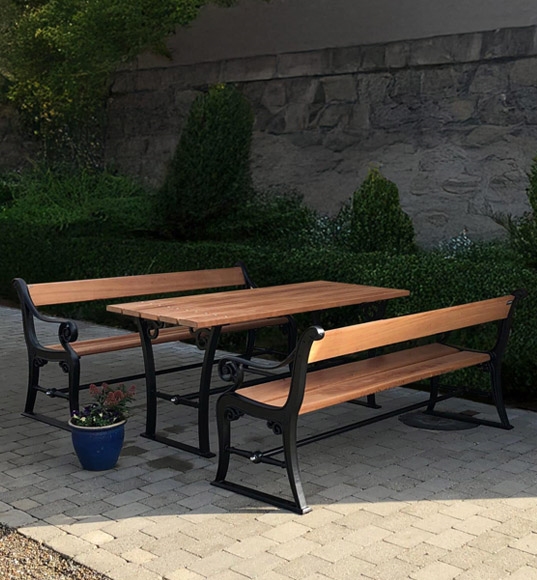 Københavner Bord/Bænkesæt - Klassisk bord- og bænkesæt i støbejern og med planker i hårdttræ