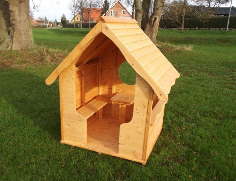 Fint lille legehus indrettet med bord og bænk. Legehuset er i høj kvalitet og velegnet til institutions brug. Det er udført i oliebehandlet / brunlaseret svensk nordlandsfyr, og har 3 hårdttræ lægter mod grunden. Fine små detaljer, som fx et lille rundt vindue over bordet, så man har udsyn til begge sider. Legehuset har også et almindeligt vindue med en lille karm, som også er perfekt som købmandsdisk, så er der lagt op til mange sjove rollelege på legepladsen med dette fine lille hus i træ. Dæk op til en lækker middag for vennerne, pynt op og stil blomster i vindueskarmen, eller lang is og andre spændende vare over disken, for at tjene lidt penge til købmandsbutikken.