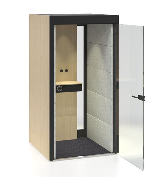 Lille mødeboks til det åbne kontor - Silent Room S, melamin / polster akustik / glas bagvæg