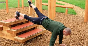 Trappe til gang, step, spring samt udstrækning - Træningsredskaber i træ - Naturfitness