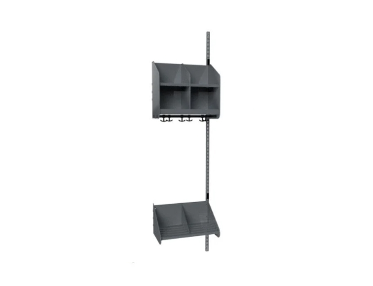 Bredde 1000 mm, 4 rum á 250 mm. Inkl. 1 skinne, 12 click-on ankerkroge. Totalbr. 1015 mm.         2.524,- ex. moms