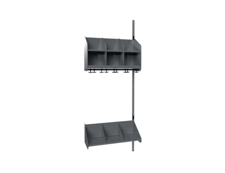 Bredde 750 mm, 3 rum á 250 mm. Inkl. 1 skinne, 9 click-on ankerkroge i plast. Totalbr. 764 mm.     1.756,- ex. moms