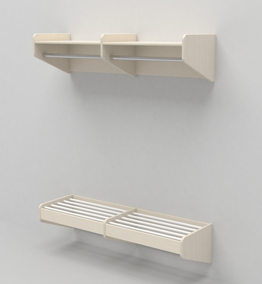 Væghængt personalegarderobe m. skohylde m. rist samt hattehylde m. bøjlestang - pris pr. påbegyndte meter