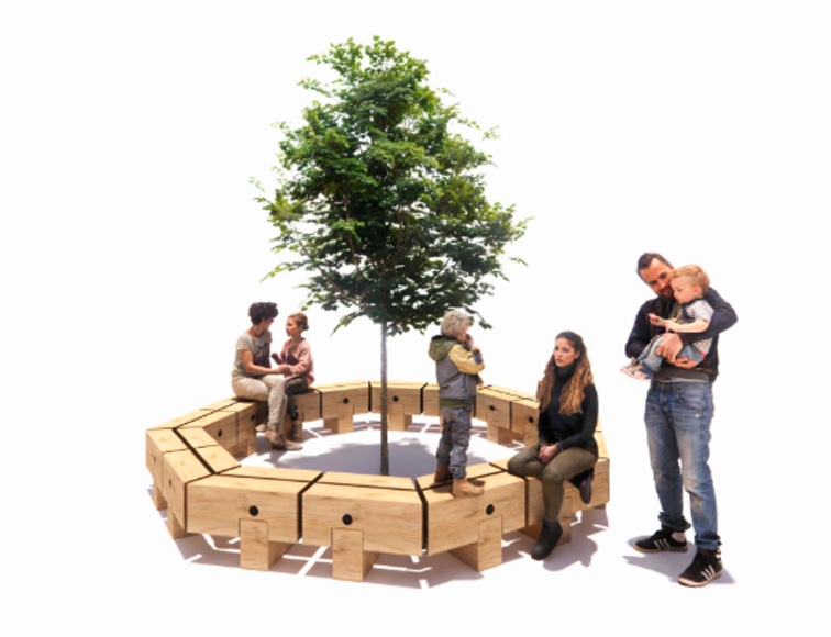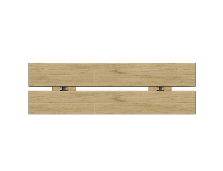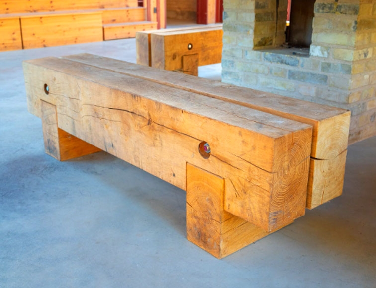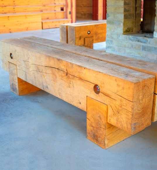 Træet kræver minimal vedligeholdelse og vil med tiden opnå en naturlig og smuk patinering. Konstruktionen sikrer en stabil og komfortabel siddeoplevelse, og der er mulighed for at tilpasse udtrykket efter projektets behov.