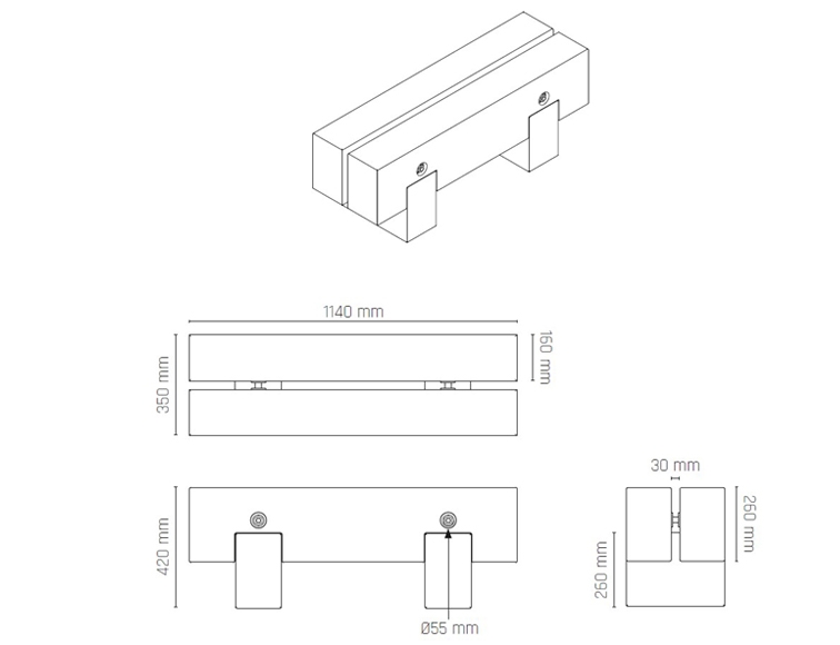 Mål:1140 mm. B 350 mm. H 420 mm. Sveller 1140 x 160 x 260 mm. Ben 350 x 160 x 260 mm. Se også måltegning.