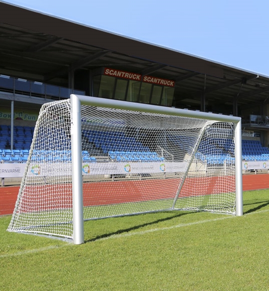 Podemål til de mindste. Dette superstærke og stabile 5-mands mål har fuldsvejset hjørnesamlinger. Det er let og nemt at flytte. Målrammen er produceret i ellipseformet alu profil 120x100 mm. Bundramme og net bøjler i varmgalvaniseret stål. Podemålet er vælte sikret med en RHS bagligger. Det ideelle mål til mindre boldbaner i sportsklubber, grundejer- og boligforeninger mv. ​Leveres med 3 mm Nylon net. Til målet medfølger 18 stk. net kroge. Der medfølger ikke jordanker.