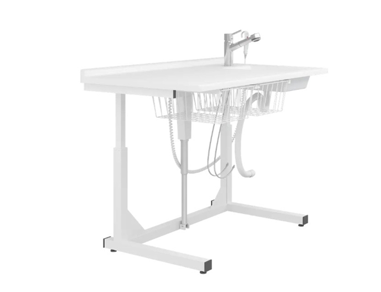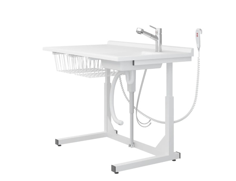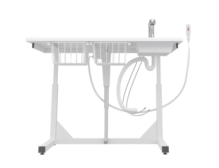 Fritstående hæve/sænke puslebord m. integreret vask m. standard armatur el. udtræksbruser - L 140 cm