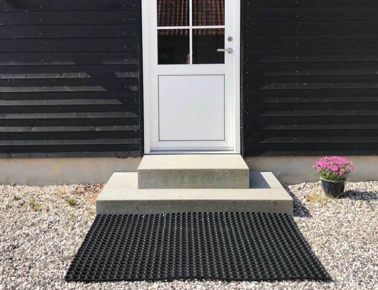 Ringmåtte / hulmåtte til faldunderlag, dørmåtte, aflastning eller stabilisering. En miljøvenlig, skrid/stødsikker ringmåtter som bl.a giver en god gangbar overflade til kørestolsbrugere mv. Også gode til bakker hvor der skal holdes på jorden samt til køre og gang arealer. Hulmåtterne er lette at montere og kan holde til al slags vejr. Pløkker og kabelbindere kan tilkøbes nedenfor.