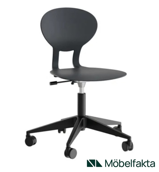 Rocka stol med sort siddeskal i polyrethan. Sæde og ryg er formet i et stykke, hvilket giver et sæde med god og naturlig støtte til ryggen. Stolen her kommer med sort drejestel og krydsfod med hjul. Den er udviklet til elever på skolernes mellemtrin og op efter, og har en justerbar siddehøjde på 45-58 cm. En komfortabel og solid stol designet til skolebrug, men også velegnet som kontorstol mv. Generelt en stol med mange anvendelsesmuligheder. Udviklet og produceret af en af Sveriges mest velrenommerede producenter af skolemøbler, og er MÖBELFAKTA certificeret.