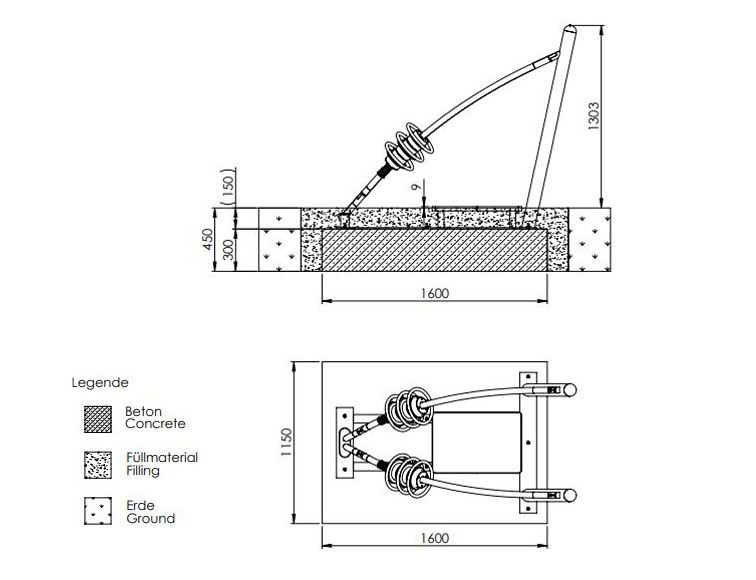 BEMÆRK at træningsredskabet skal støbes fast. Faldunderlag er valgfri.
