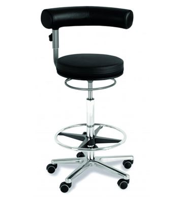 Sanus ergonomisk højstol i læder passer perfekt ind i enhver indretning fx på kontoret, mødelokalet eller lignende steder. Stolen har et eksklusivt look og ville også egne sig godt som barstol. Generelt en lækker og alsidig stol der sikre varierende og dynamiske siddestillinger, velegnet til alle steder med høje borde og diske. Stolen har regulerbar ryg- og armstøtte, som kan roteres 360º rundt om stolen og justeres i højden med 6 cm. Sædet er polstret med en højkvalitets sædekerne for god siddekomfort. Siddehøjden justeres nemt med en praktisk ring under sædet. Sanus højstolen kommer med fodring og glidefødder eller let bremsbare hjul
