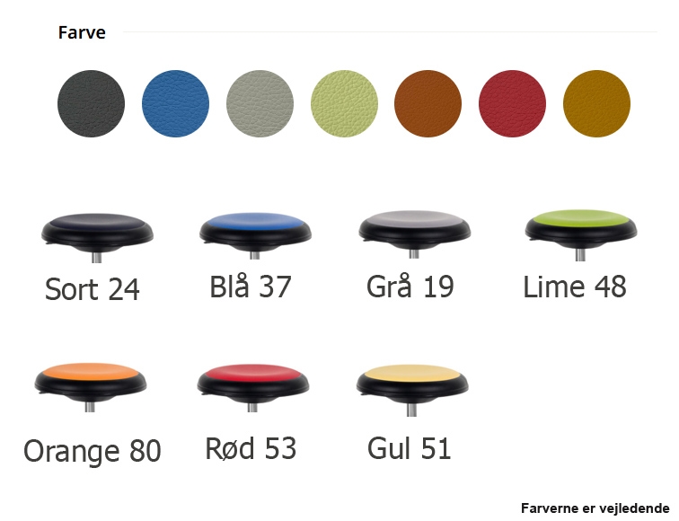 Farver: Vælg imellem 7 farver kunstlæder. Se vejledende farvekort og vælg ønskede farve nedenfor.