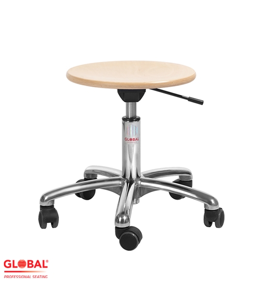 Taburet Jupiter Alu50 er en stilfuld og rengøringsvenlig taburet, som aflaster og forenkler arbejdet. Taburetten har aluminum stel og 50 mm letløbende hjul. Sædet er af formspændt og lakeret plywood (Ø35 cm), som er et praktisk og robust materiale, også til de grovere miljøer. En god og robust taburet til mange anvendelser.