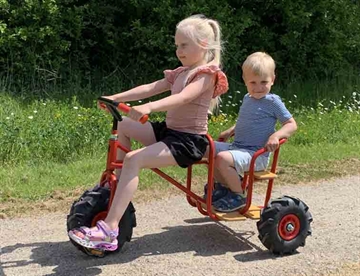 Denne trehjulet cykel med bagsæde fås også med massive gummihjul. Se den her. Se også hele vores udvalg af Rose Cykler / køretøjer jer.