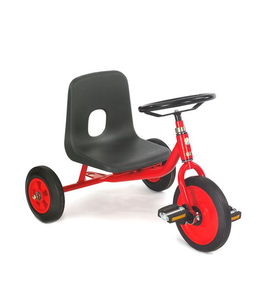 Sjov lille Go-kart lignende trehjulet cykel med formstøbt plastsæde og massive gummihjul perfekt til legepladsen legeområde. Cyklen har racerrat hvilket sammen med sædet får den til at skille sig ud fra de mere traditionelle trehjulede cykler. Kvaliteten er i top på dette lille pedalkøretøj, som er yderst velegnet til brug i institutioner mv. Passer til børn i alderen 3-5 år.