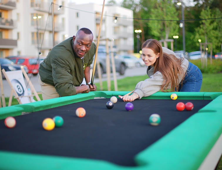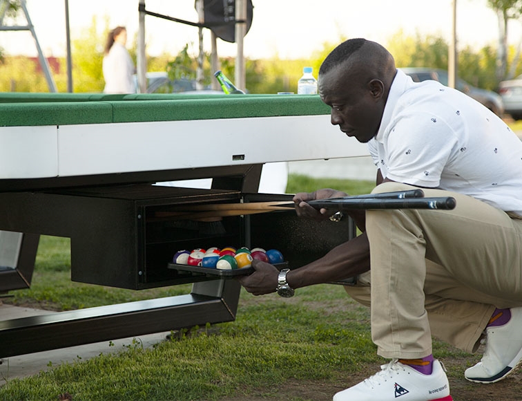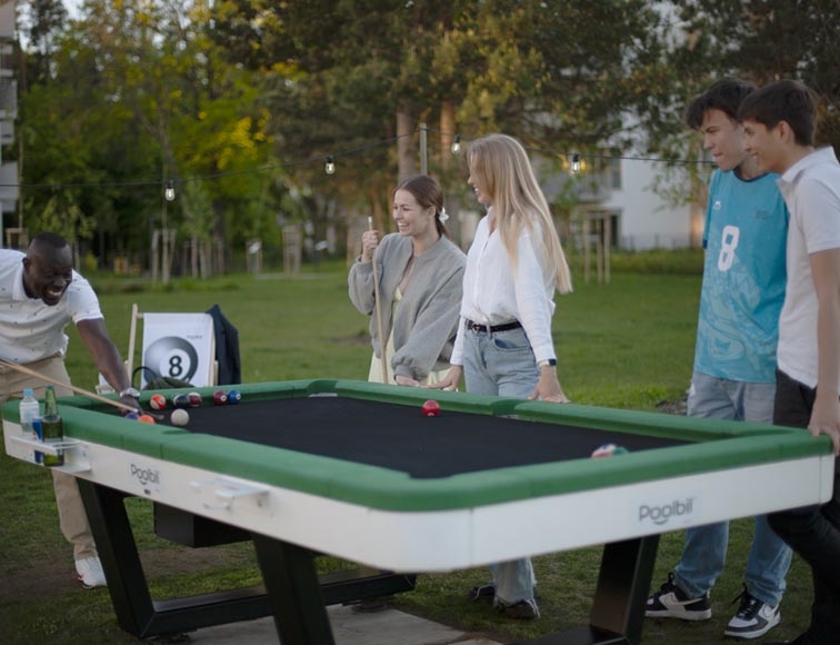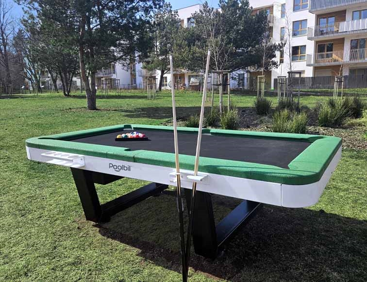 Udendørs Poolbord, Poolbil - aktivitetsbord designet til offentlige udendørs miljøer
