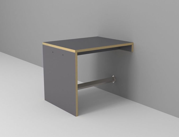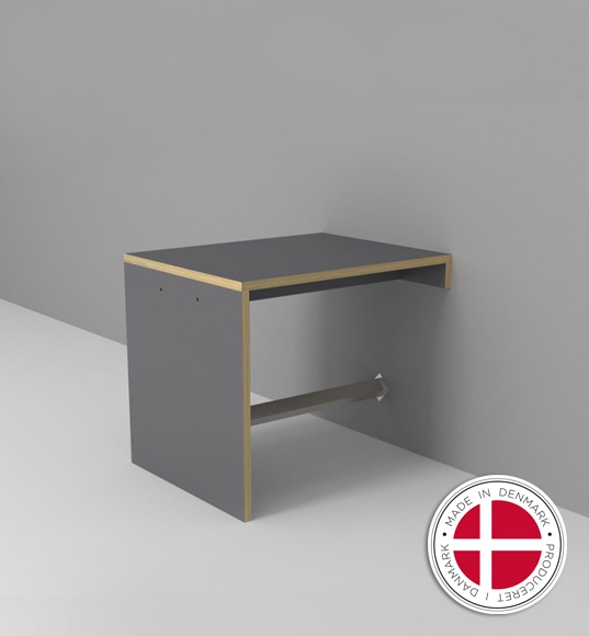 Lækkert gavlbord med fodstøtte til vægmontering. Et godt højbord med endegavl, som passer ind i de fleste indretninger, med sit enkle og stilrene udtryk. Bordet er udført i 30mm birkekrydsfiner med slidstærkt laminat på top og sider. Dette væghænge gavlbord er et alsidigt møbel med mange anvendelses muligheder. Er bl.a. velegnet som mødebord på konteret, ståbord til korte møder og sammenkomster, barbord i loungeområder mv. Højborde fungerer generelt godt som samlingssted i diverse opholdsrum. Brug det til at stå omkring, eller køb stole til. Se fx. vores udvalg af Barstole og Høje stole her.