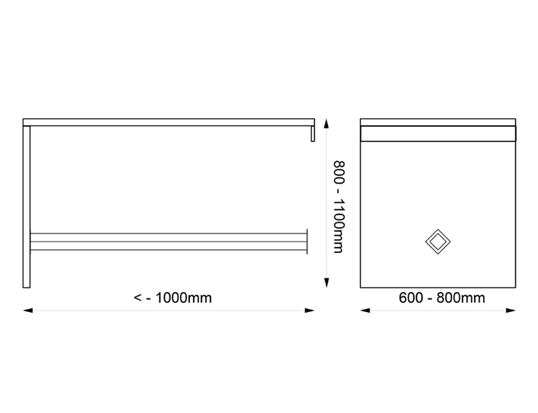 Mål: Bordet her har Længde 100 cm. Fås i flere bredder og højder. Se varianter nedenfor.