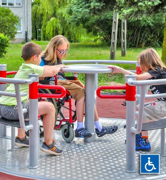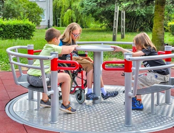 Yugo karrusel til 3 kørestolsbrugere - Kørestolsvenlig og inkluderende legeplads